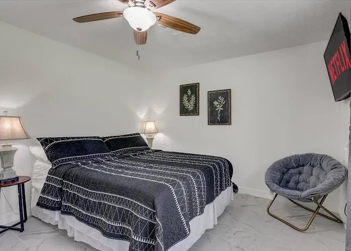 A Updated 4 Bedroom Home In Oragnefield tem cozinha totalmente equipada equipada com refrigerador, utensílios de cozinha e artigos de vidro para os hóspedes fazerem as suas refeições. O aeroporto em Beaumont Jefferson County está localizado a 38 minutos de carro desta casa de férias de Orange.